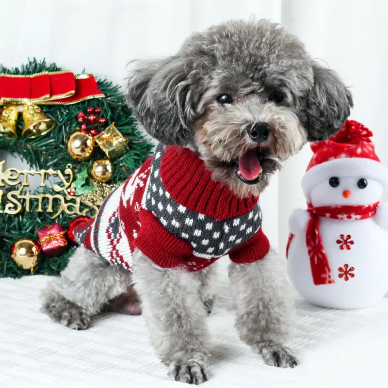Festive Christmas Dog Sweater - Cozy Knit Holiday Outfit for Small to Medium Dogs, Puppies, Cats, Bichon, and Corgis