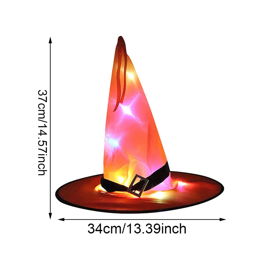 - LED Lighting: Built-in lights provide a glowing effect, enhancing the witch hat's spooky charm.